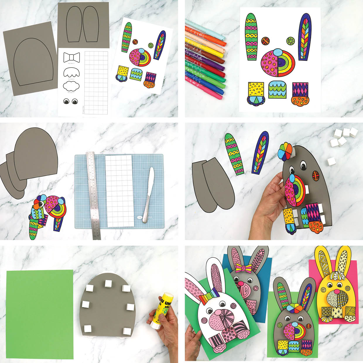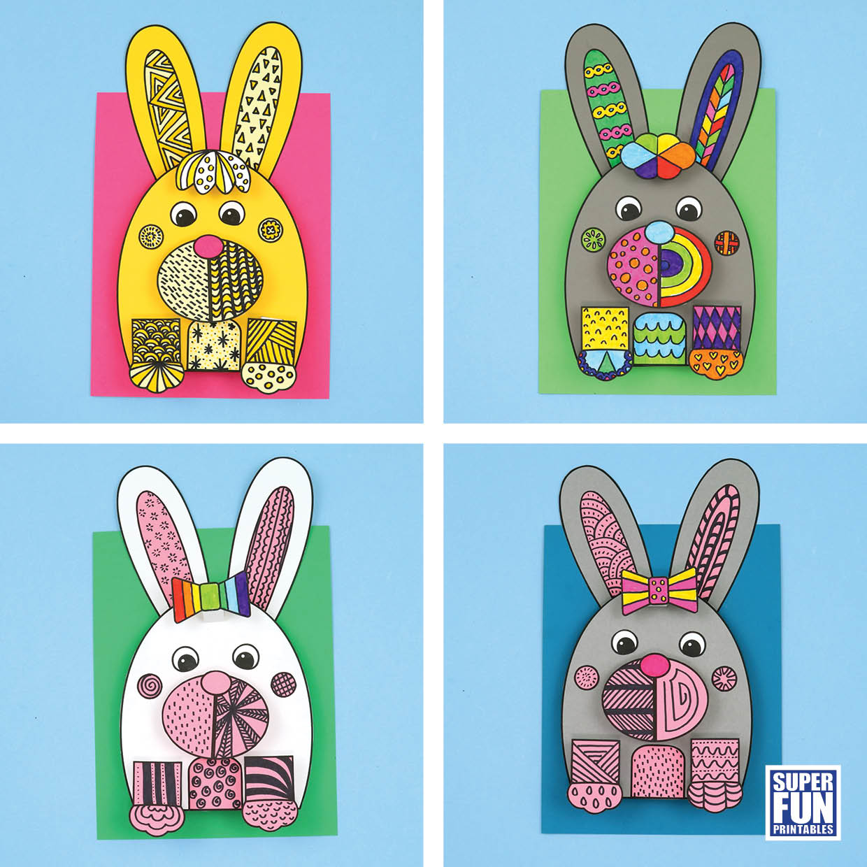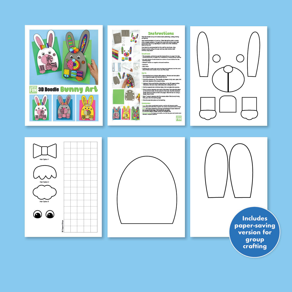 • The doodle bunny art template with an additional version for variations and crafting with large groups