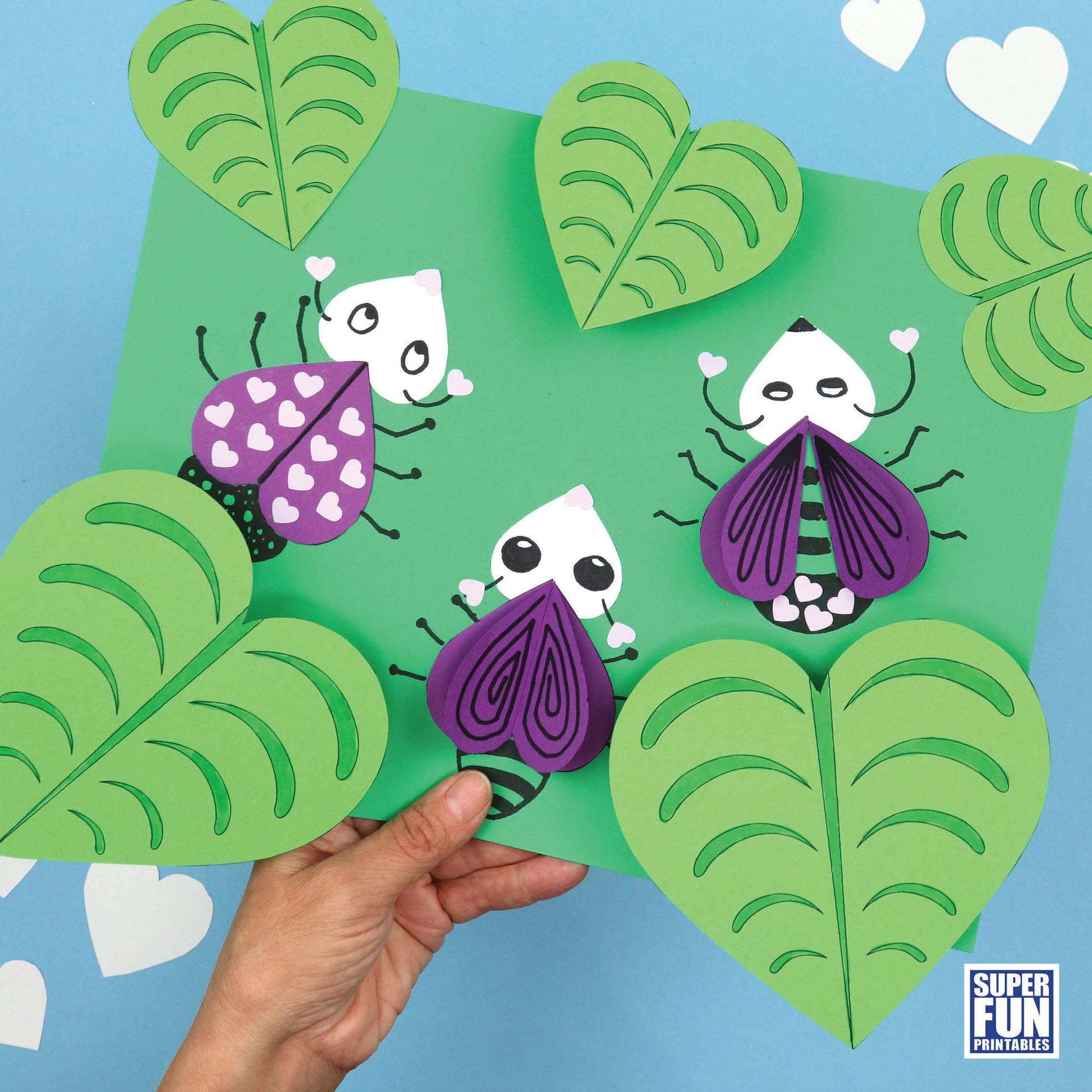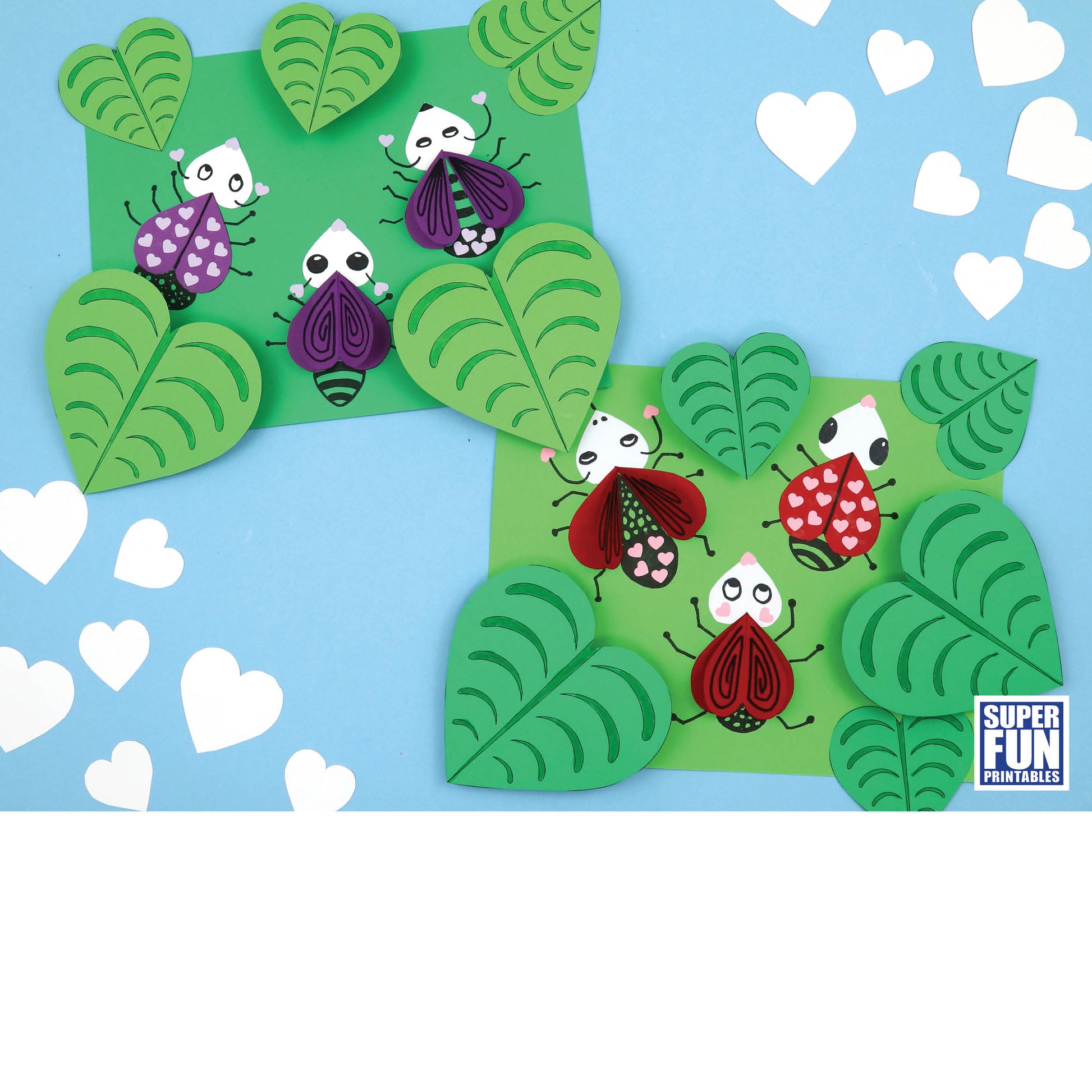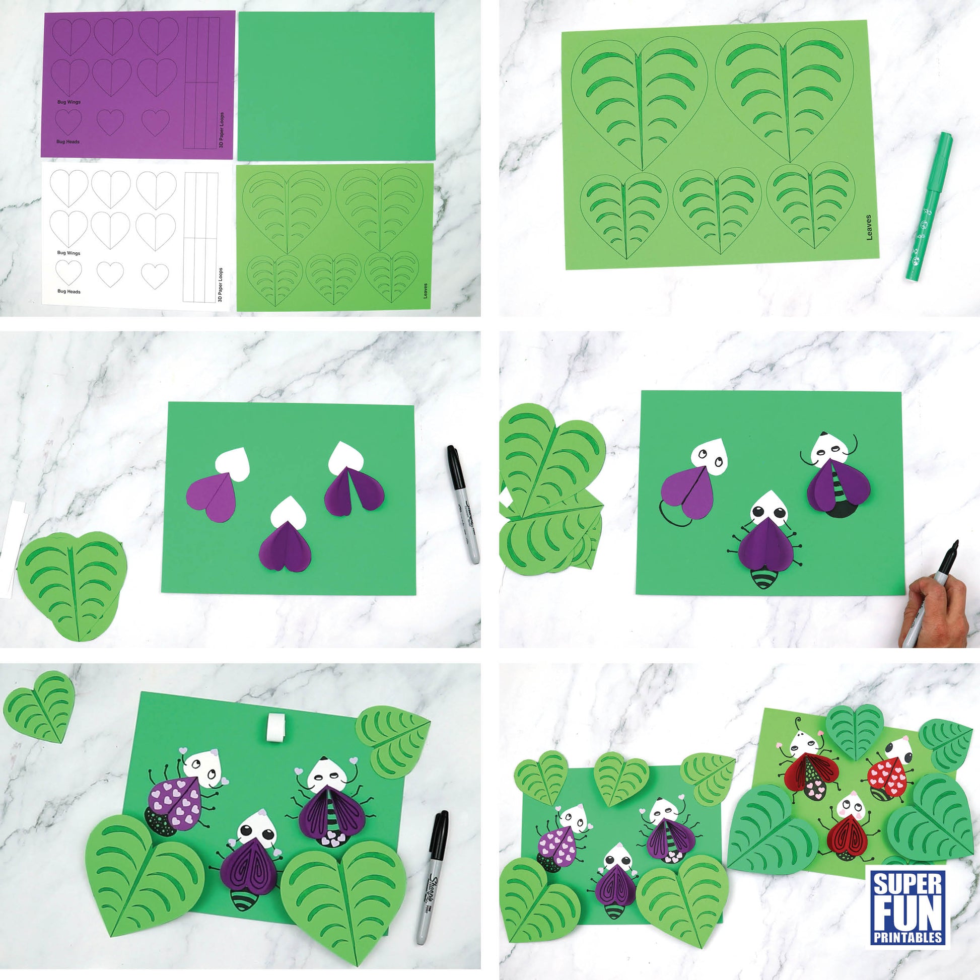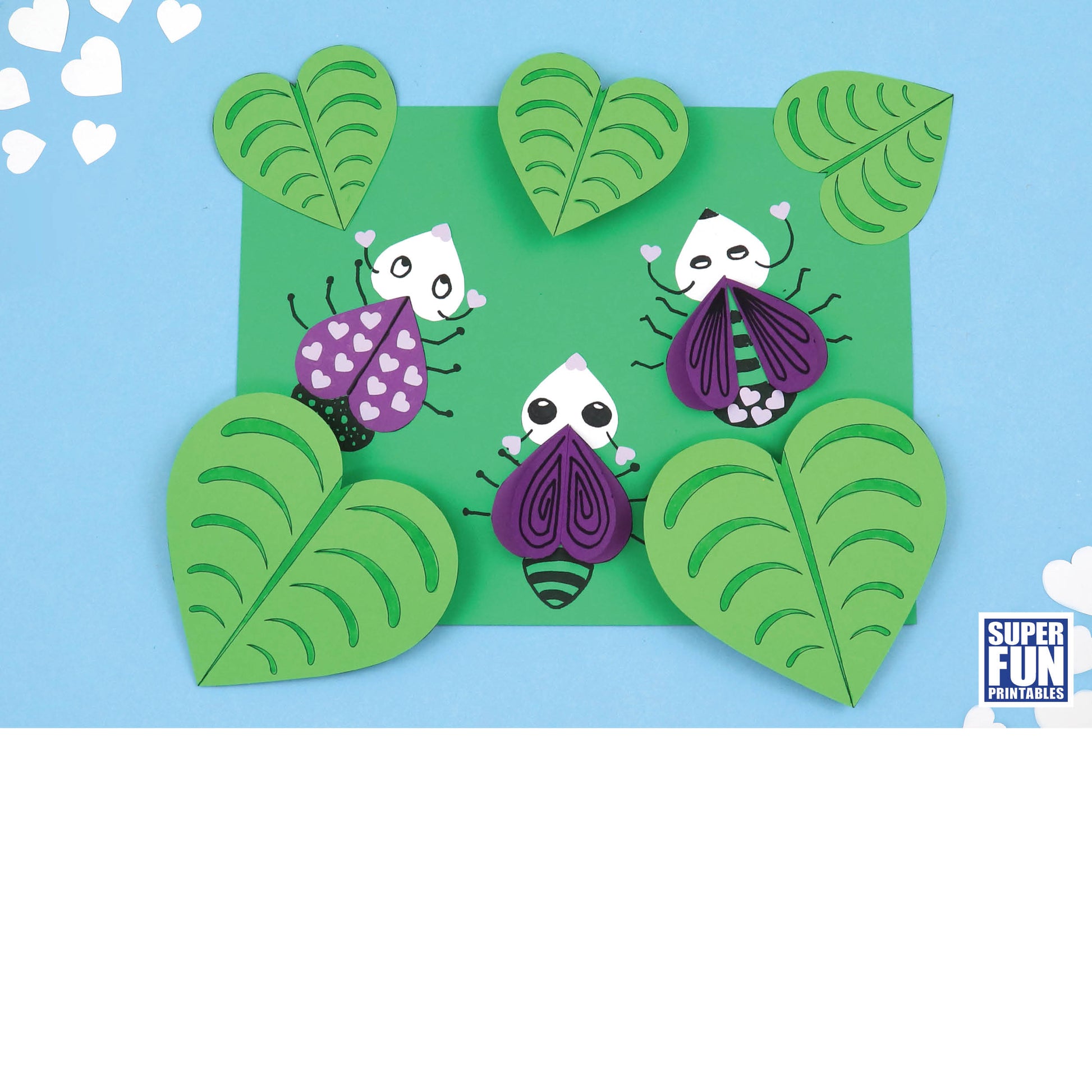 Create the cutest 3D Mini Lovebugs from heart shapes using this template. The finished project has a 3D 'pop out' effect with raised leaves and bug wings.