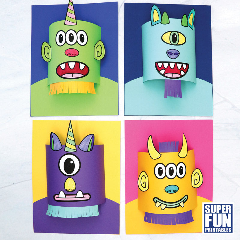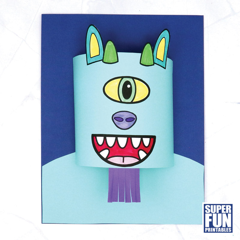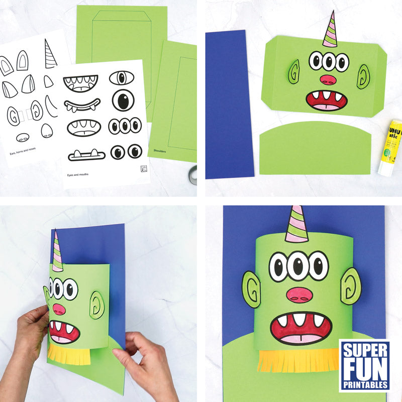 This printable craft includes the template for a pop-out head and shoulders along with a set of mix-and-match facial features so that kids can design their own unique monster characters.