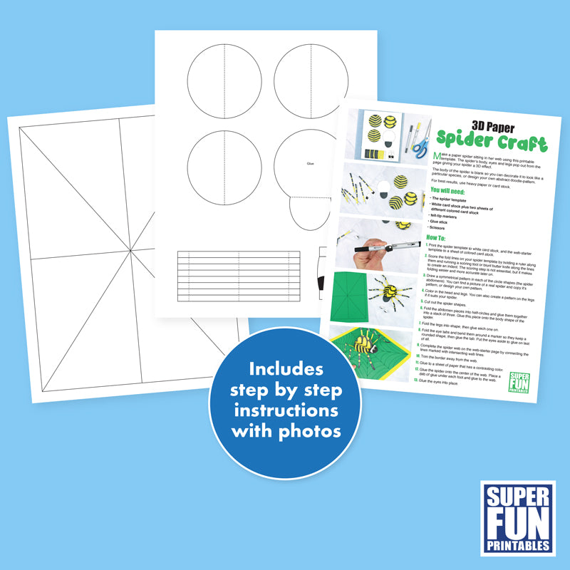 Spider craft template was great for my daughters school assignment and looked fantastic . Some of the instructions and pictures were a little hard to follow but we worked it out.