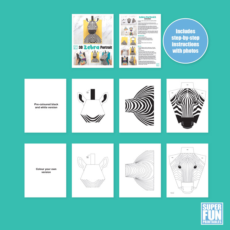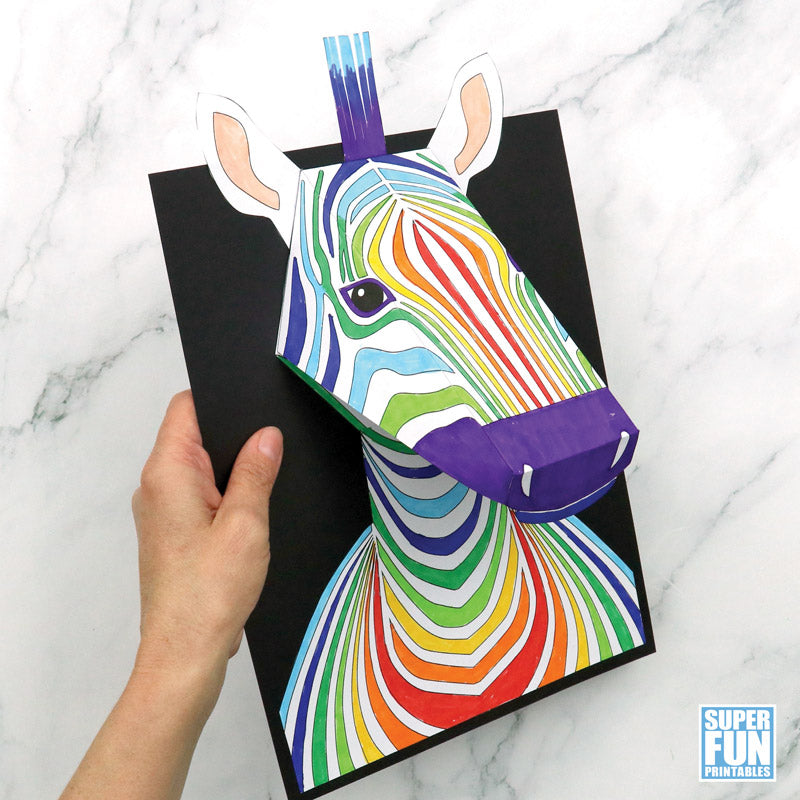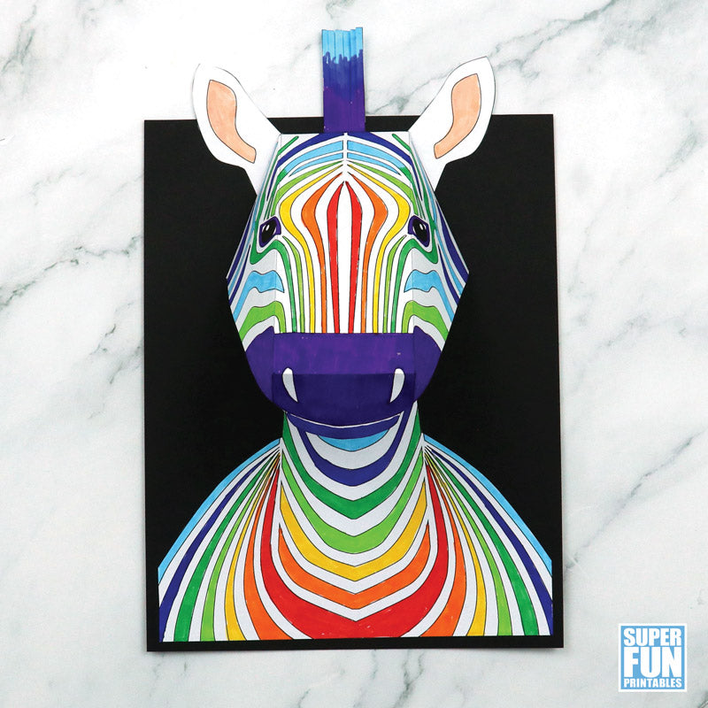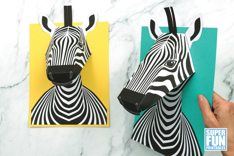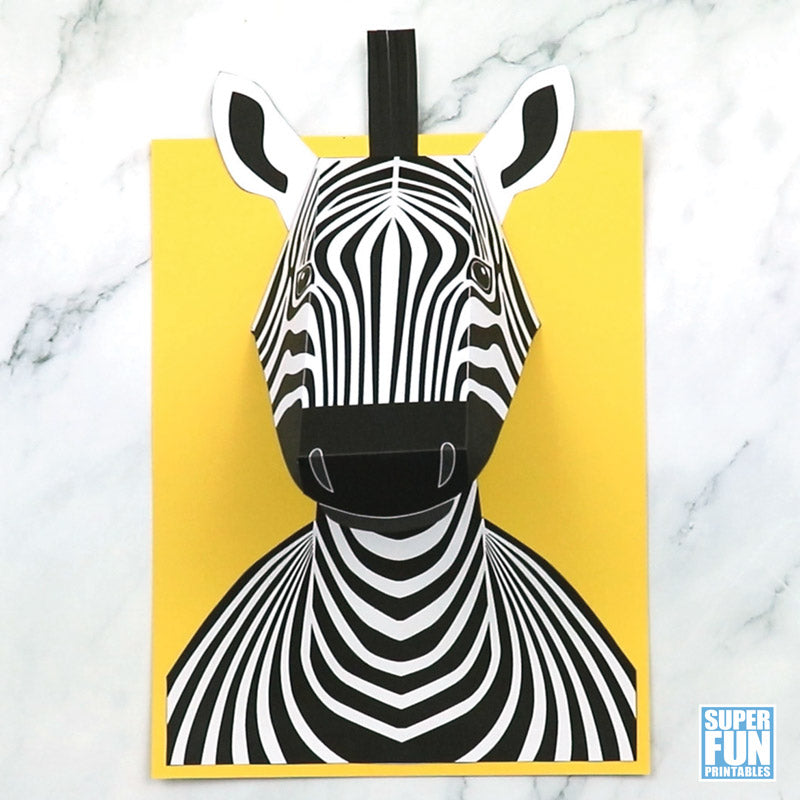 Create an eye-catching 3D zebra portrait that 'pops' off the page with this printable craft. It's super easy!
