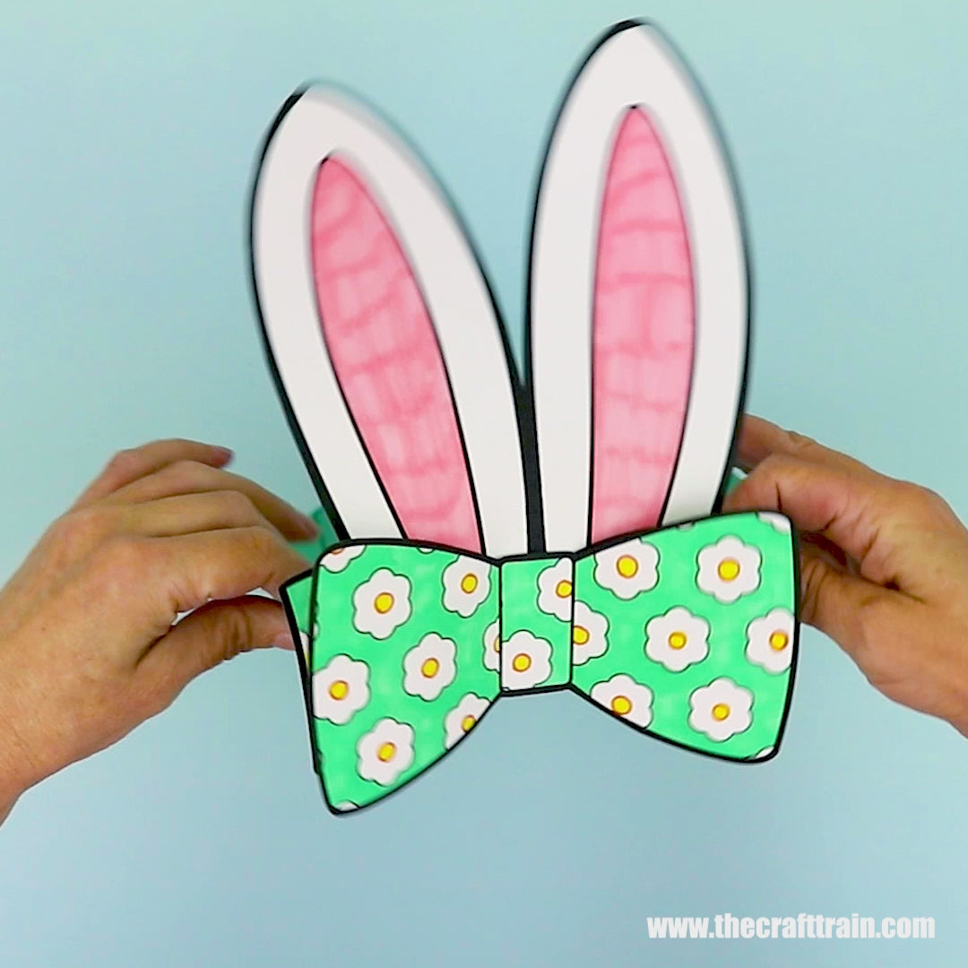 Print, colour, and make a set of paper bunny ears for Easter! There are four designs to choose from: Top Hat ears, Spring Roses ears, Bow ears, and plain rabbit ears.