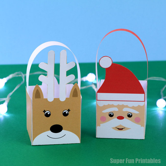Make cute Christmas gift baskets in either a Reindeer or Santa Claus design. These baskets would make a sweet Christmas gift for friends filled with treats or a small gift. They would also make an easy, no mess activity to keep kids busy during the festive season.
