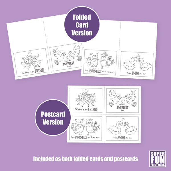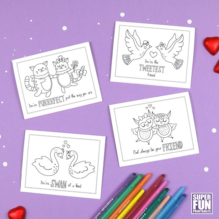 This is a set of four friendship-based Valentine's Day colouring cards.