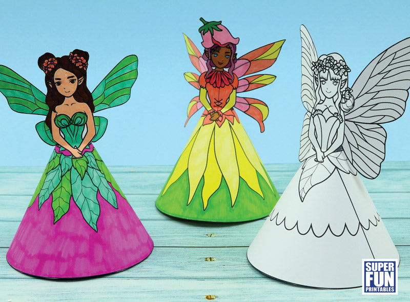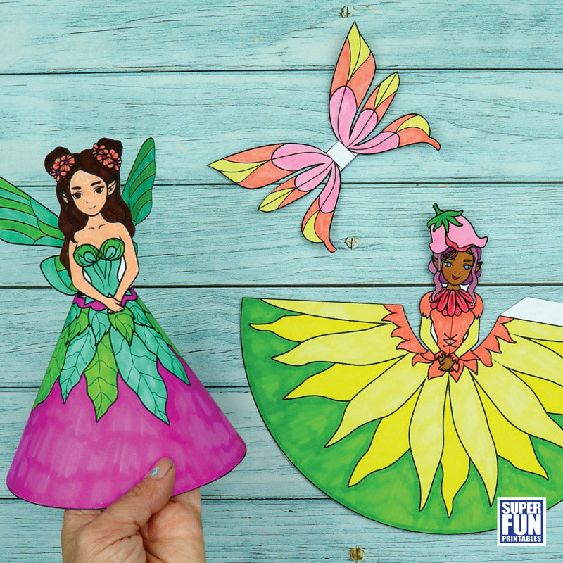 The fairies are super easy make! Simply colour, cut out and glue together. The finished paper dolls will inspire hours of imaginative fairy-themed play.