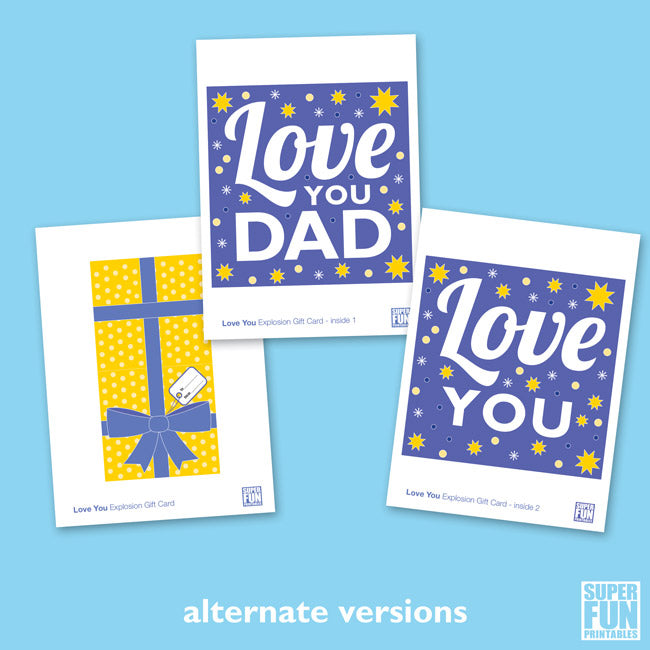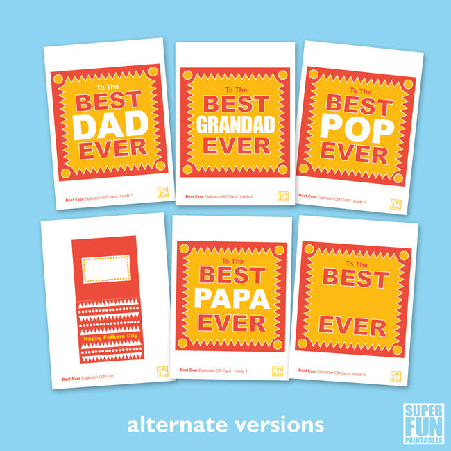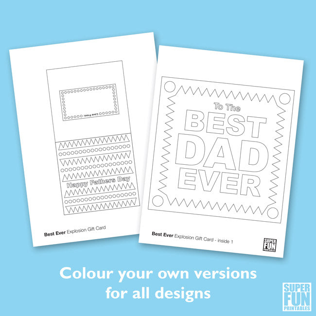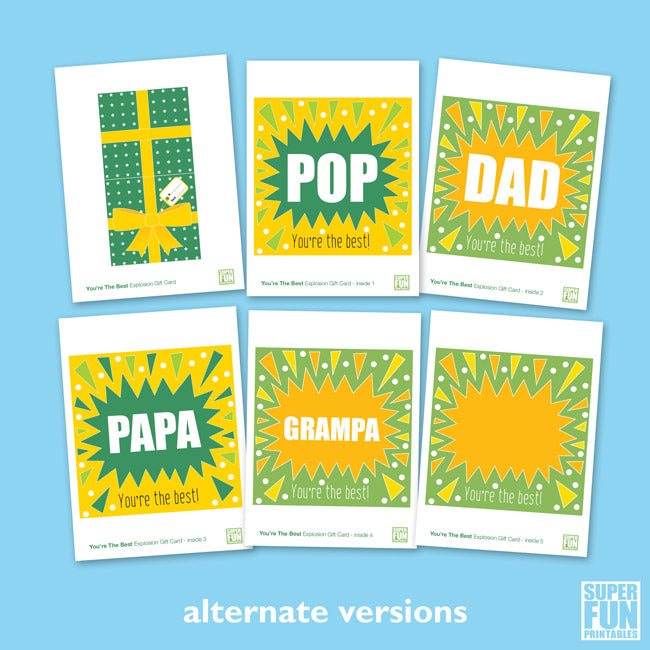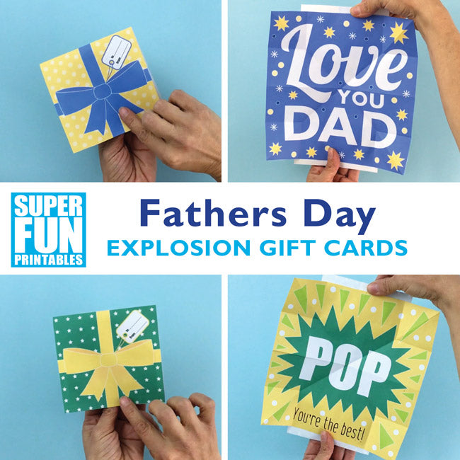 Make Dad's Day with one of our Fathers Day Explosion cards. Or Papa, Grandad and Pop's day too for that matter – they have not been forgotten with this set of printable cards.