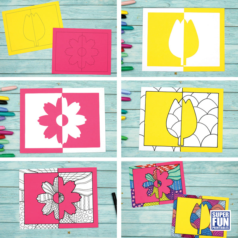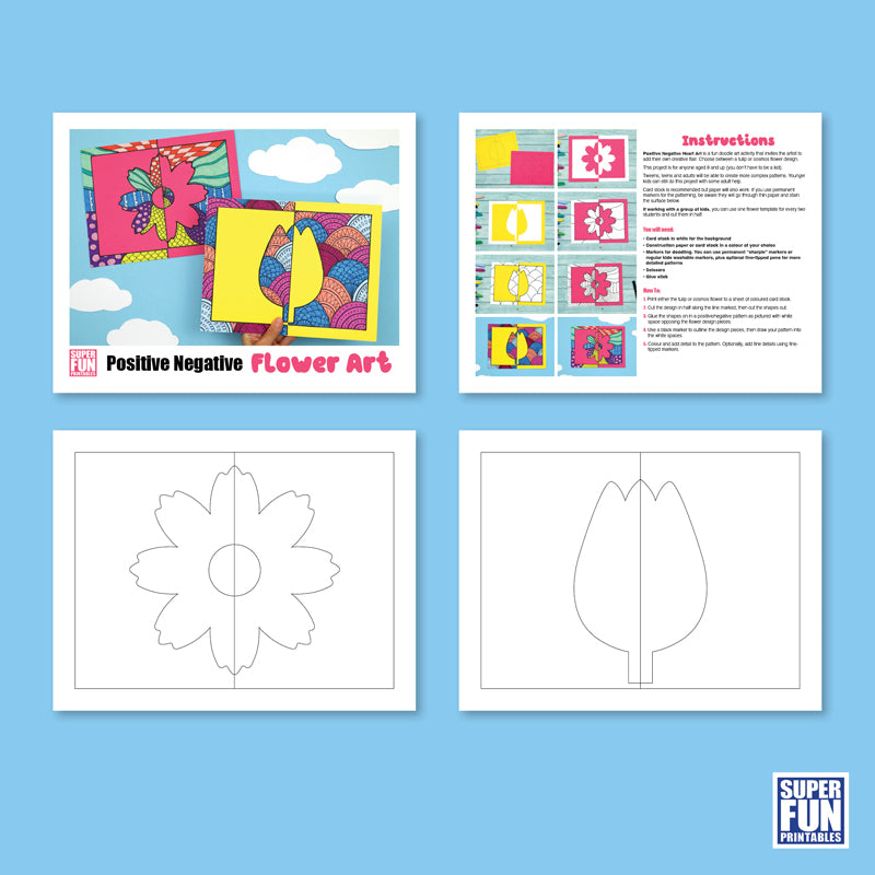 Explore positive/negative space with this flower pattern art project. The template includes two flowers, tulip and a Cosmos, to choose from.