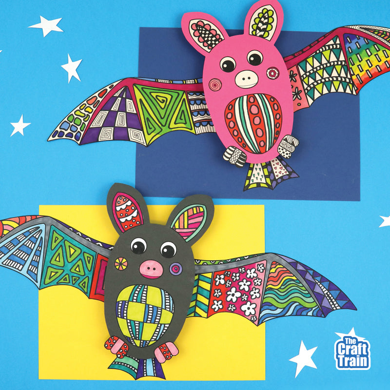 There are 5 projects in the set: Halloween Positive Negative Art, Spook Town Paper Village, Halloween Rockers, 3D Bat Pattern Art and Rainbow Bat Treat baskets.