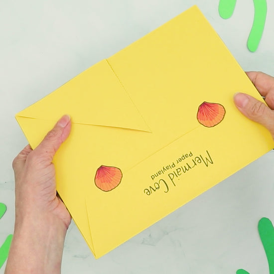 This is a fun Summer or weekend project for kids that could also be a good collaborative craft for a parent or carer to make with kids. The completed project becomes a pop-up-and-play DIY toy. When done playing, the background becomes an envelope to store the mermaid characters and accessories.