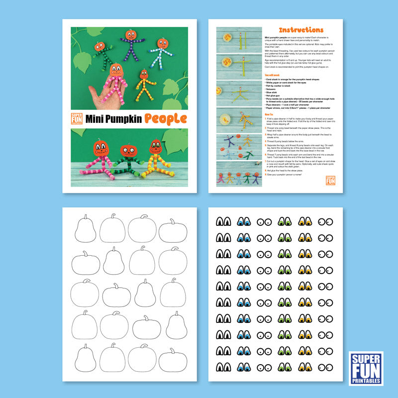 • The printable template needed for the pumpkin people's heads with a selection of glue-on cartoon eyes