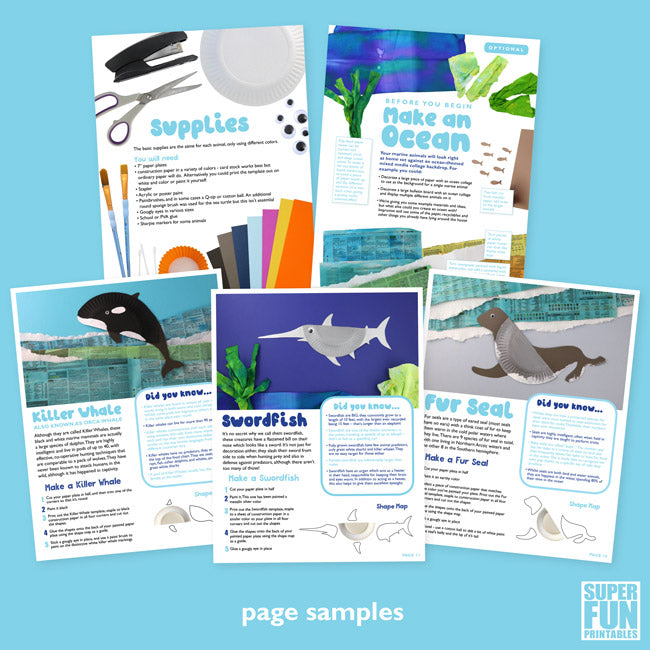 This Ocean Animal Ebook includes 14 printable templates that transform ordinary paper plates into marine animals. Fascinating facts are included about each animal so kids can learn about each animal as they craft.