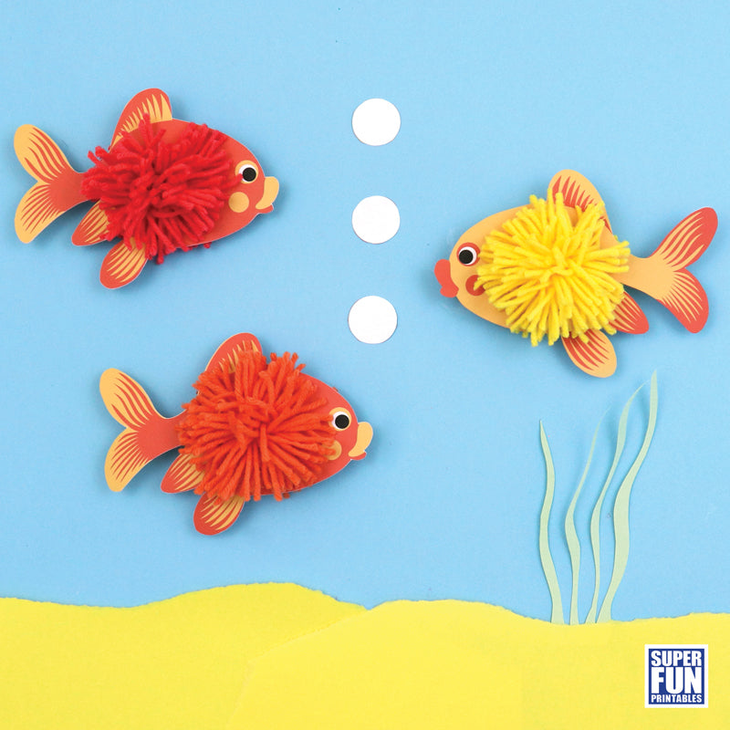 Make a Pom Pom Goldfish craft with this printable template—they're the fluffiest fish you'll ever see! This is a fun Summer or pet-themed activity for kids.