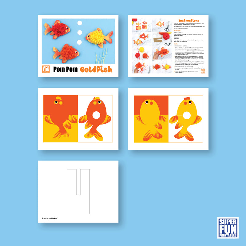 • The pom pom fish template in two colours (dark orange and yellow-orange)