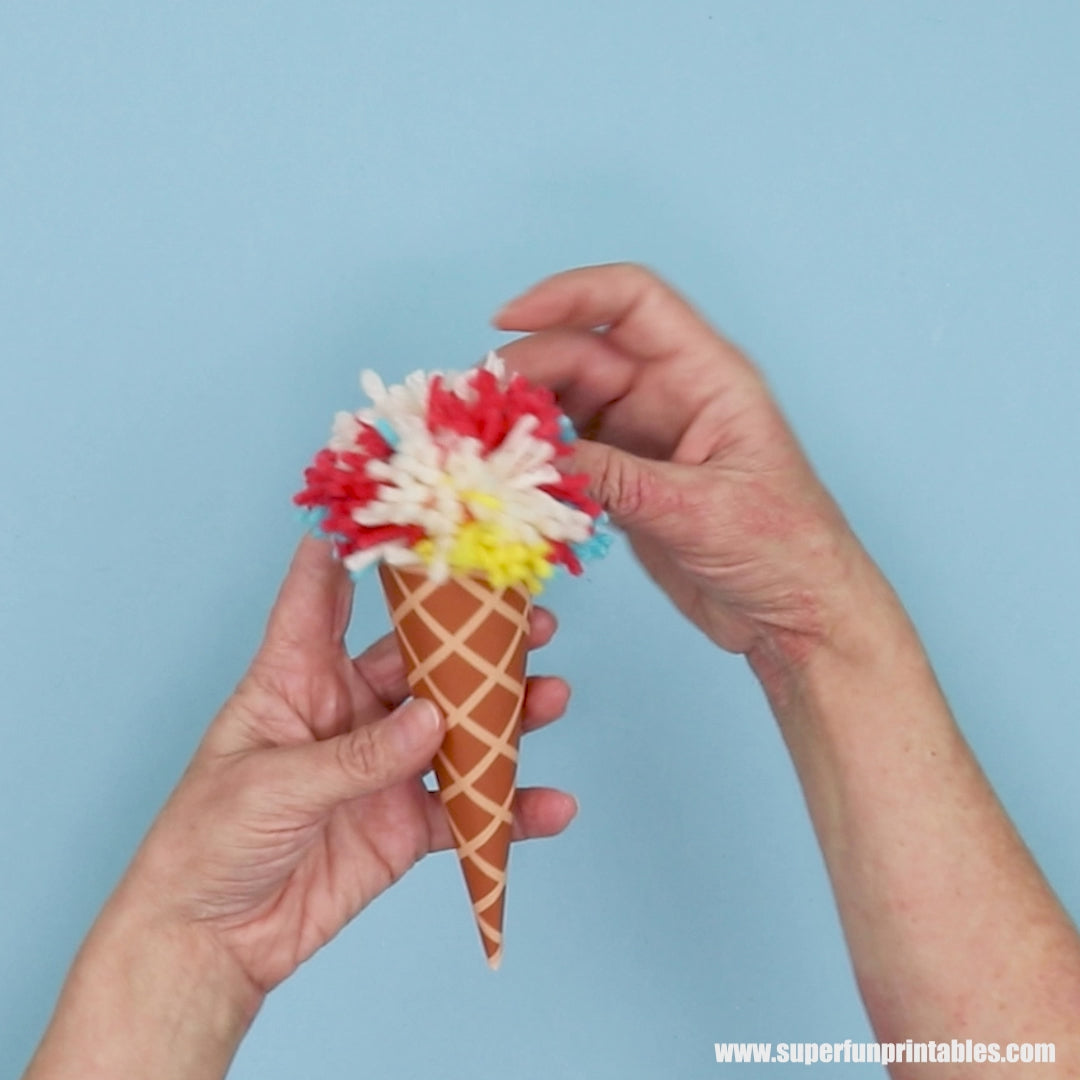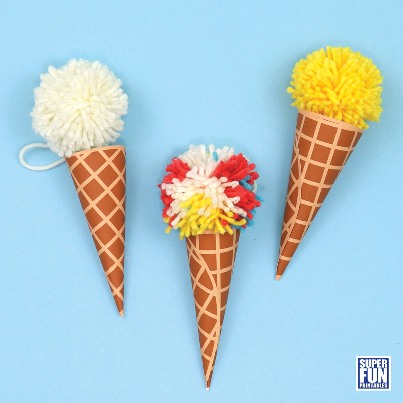 This is a classic toy from yesteryear with a fun Summer twist. The pom pom is made using a DIY cardboard pom pom maker (template and instructions included). The cone comes in full colour, colour-your-own and blank so kids can decorate it any way they like.
