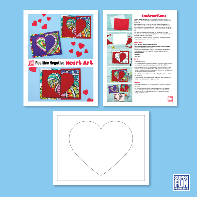 This Valentine's Day themed art activity explores positive and negative space, symmetry, pattern and line art. In the process, it gives kids the opportunity to add their unique creative spin.