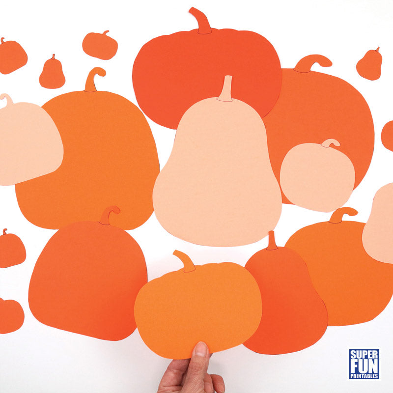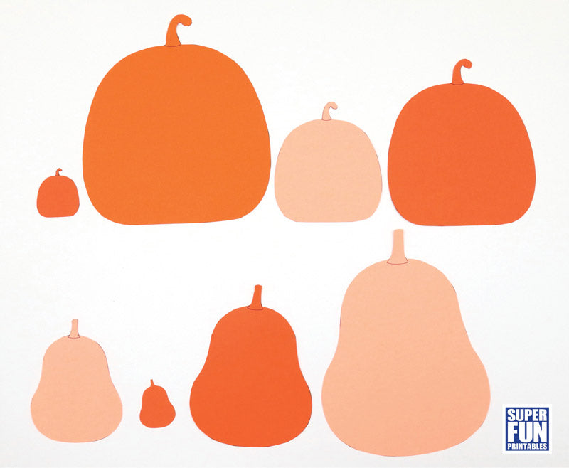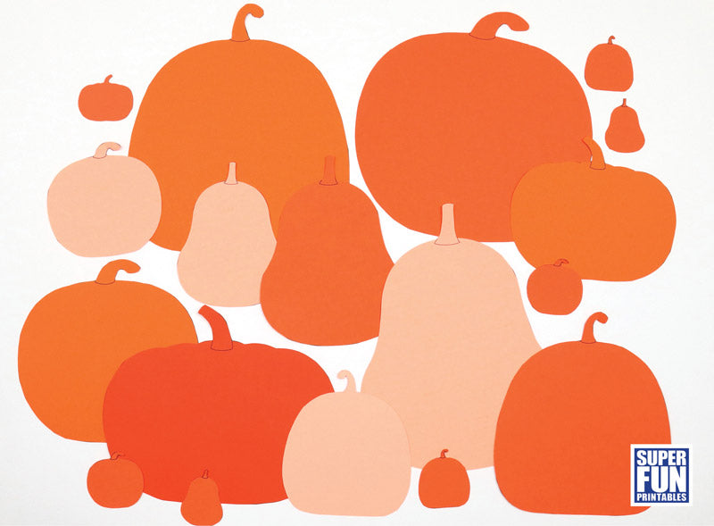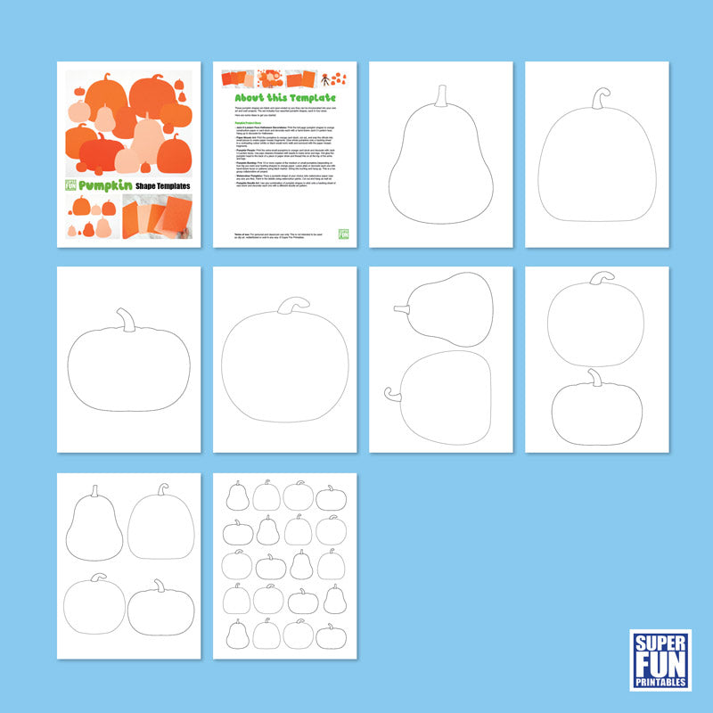 • Eight pages of pumpkin shapes in assorted sizes from large to extra small.