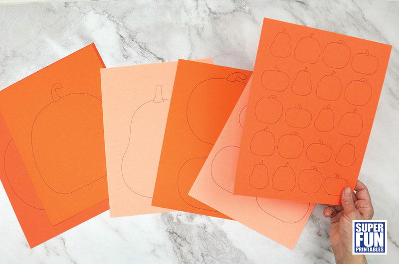 For orange pumpkins like those pictured in the example photos print to orange paper or card stock.