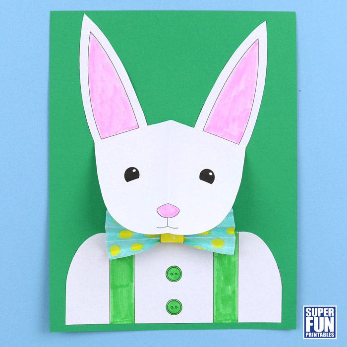 3D paper bunny - use this printable template to make a 3D portrait of a bunny with a snazzy paper bow tie