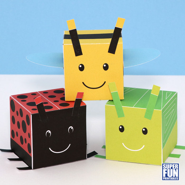Cube bugs - create four assorted spring bugs in the shape of 3D cubes