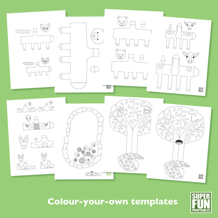 The animals are simple to cut out and glue together, and the template is supplied in both full colour and black and white line art so you can colour your own if preferred.