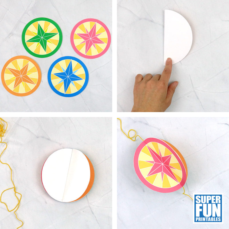 Make a hanging paper star that spins in the breeze with this printable craft template.