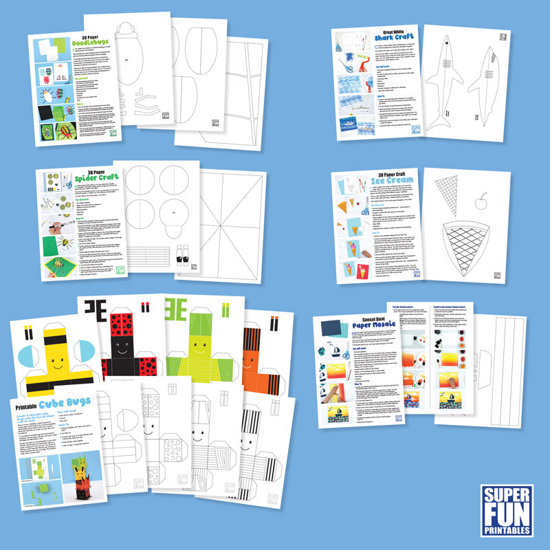 Keep the kids busy with this bundle of summer-themed paper crafts!