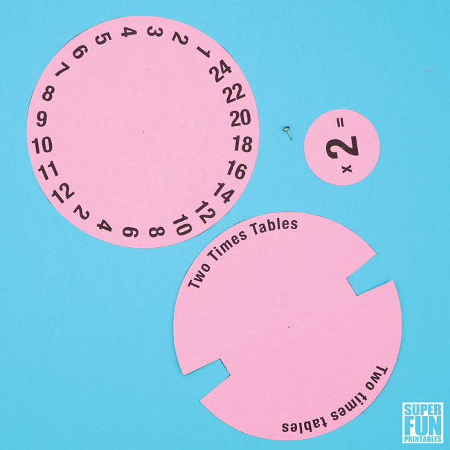 Each spinning disc contains the answers to one of the multiplication tables from one through to twelve. The number in the centre of the disc is the number you are multiplying by.