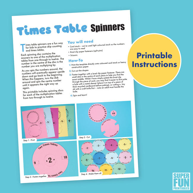 Times table spinners are a fun DIY toy you can make at home or in the classroom to help kids practice skip counting and times tables.