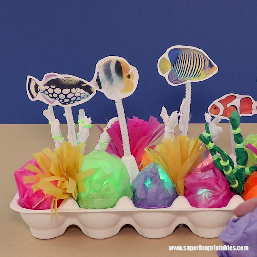 Make an egg carton tropical reef that doubles as a nightlight with this printable template.